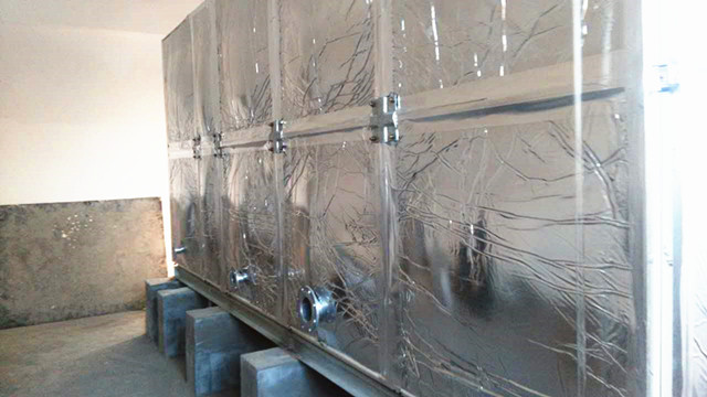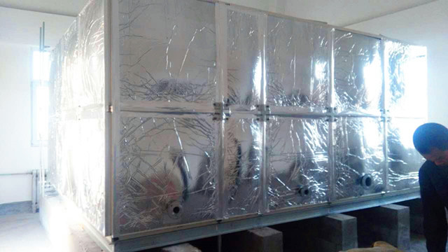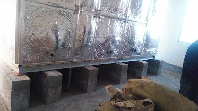 此水箱外圍為鋁箔布橡塑保溫,客戶在找到我們時根本不了解水箱保溫情況,只告訴我們水箱是在學校用,供學校學生用水。水溫要保存好才行。經過我們的了解,我公司向客戶提供使用玻璃鋼材質,外加橡塑保溫。水箱材質用水既安全、衛(wèi)生又耐用,用個十多年沒問題,而且橡塑保溫價格便宜,水溫在24小時之內能保持10-30度左右是沒有問題的