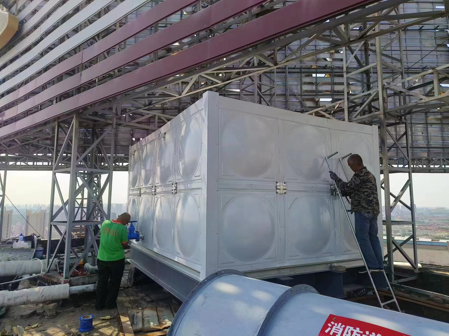 德州德百物流批發(fā)城24立方玻璃鋼聚氨酯彩鋼板保溫水箱已經(jīng)安裝完畢,此次安裝的進(jìn)度也非常快,在規(guī)定的時間內(nèi)完成了安裝和試水,得到了客戶的認(rèn)可。您的認(rèn)可就是對我們鼓勵。